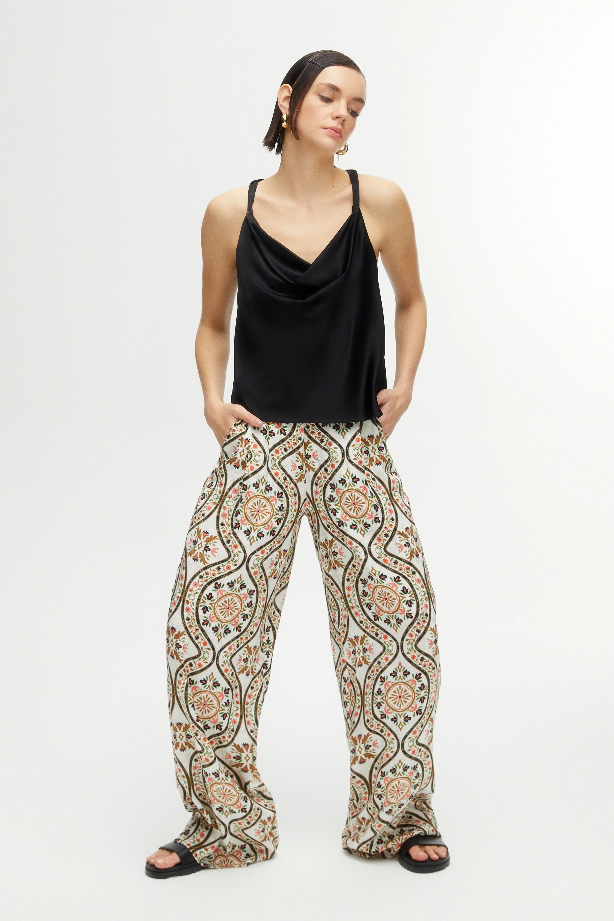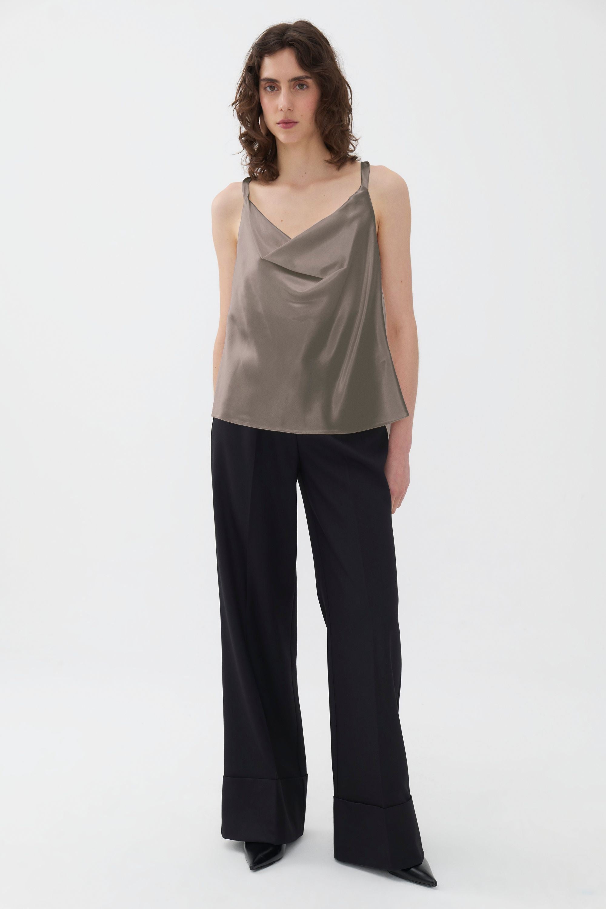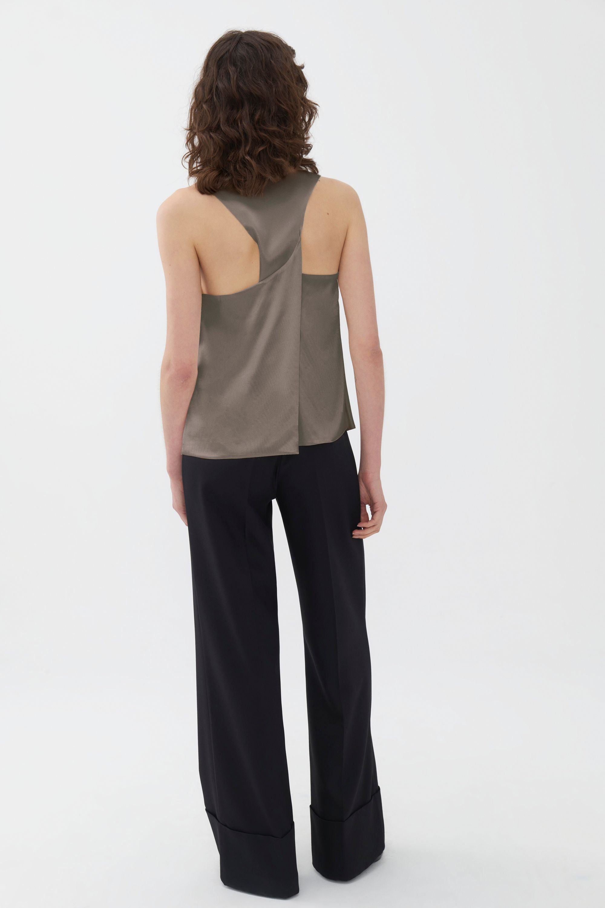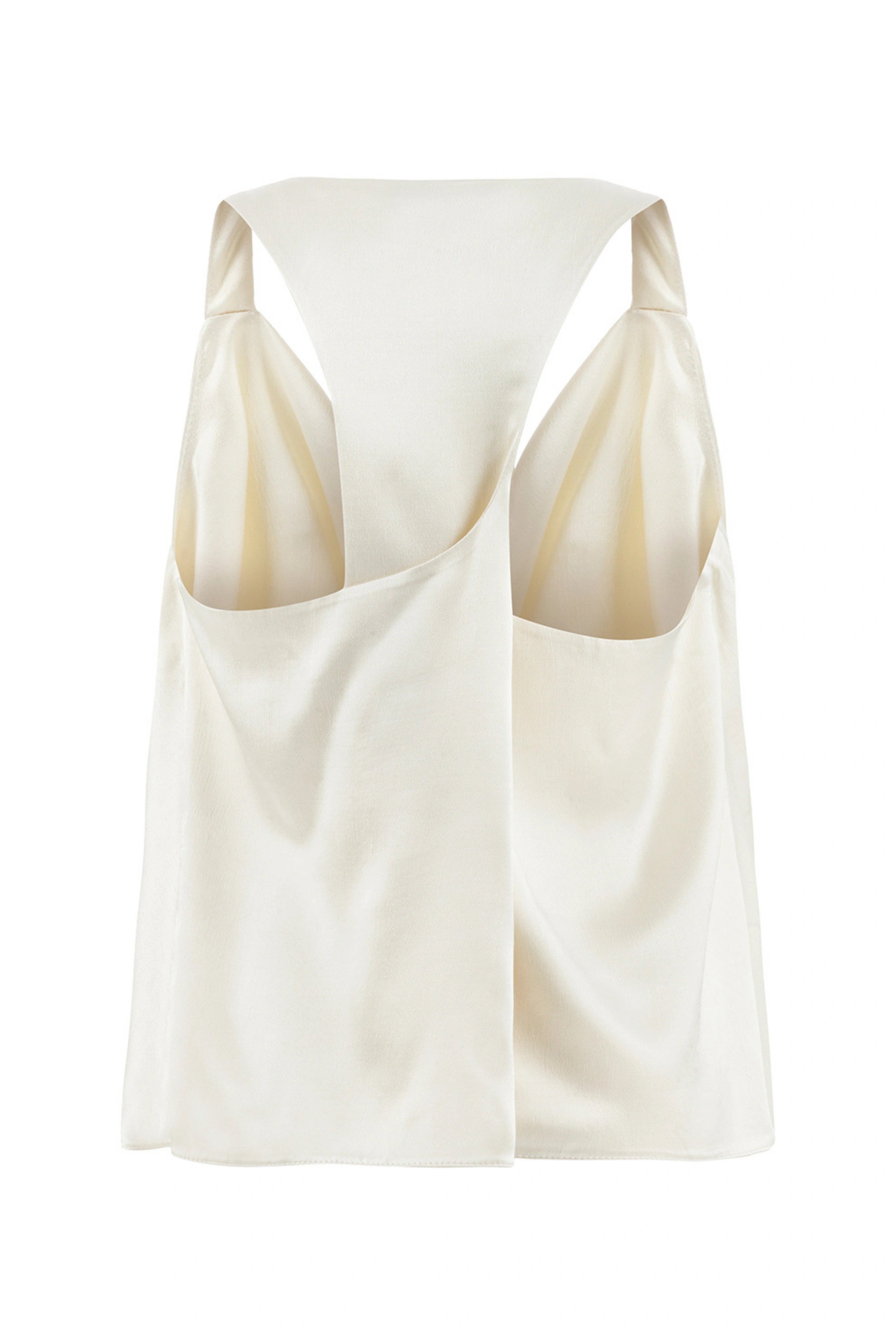 Halter back detail, thin straps, scoop neck blouse.