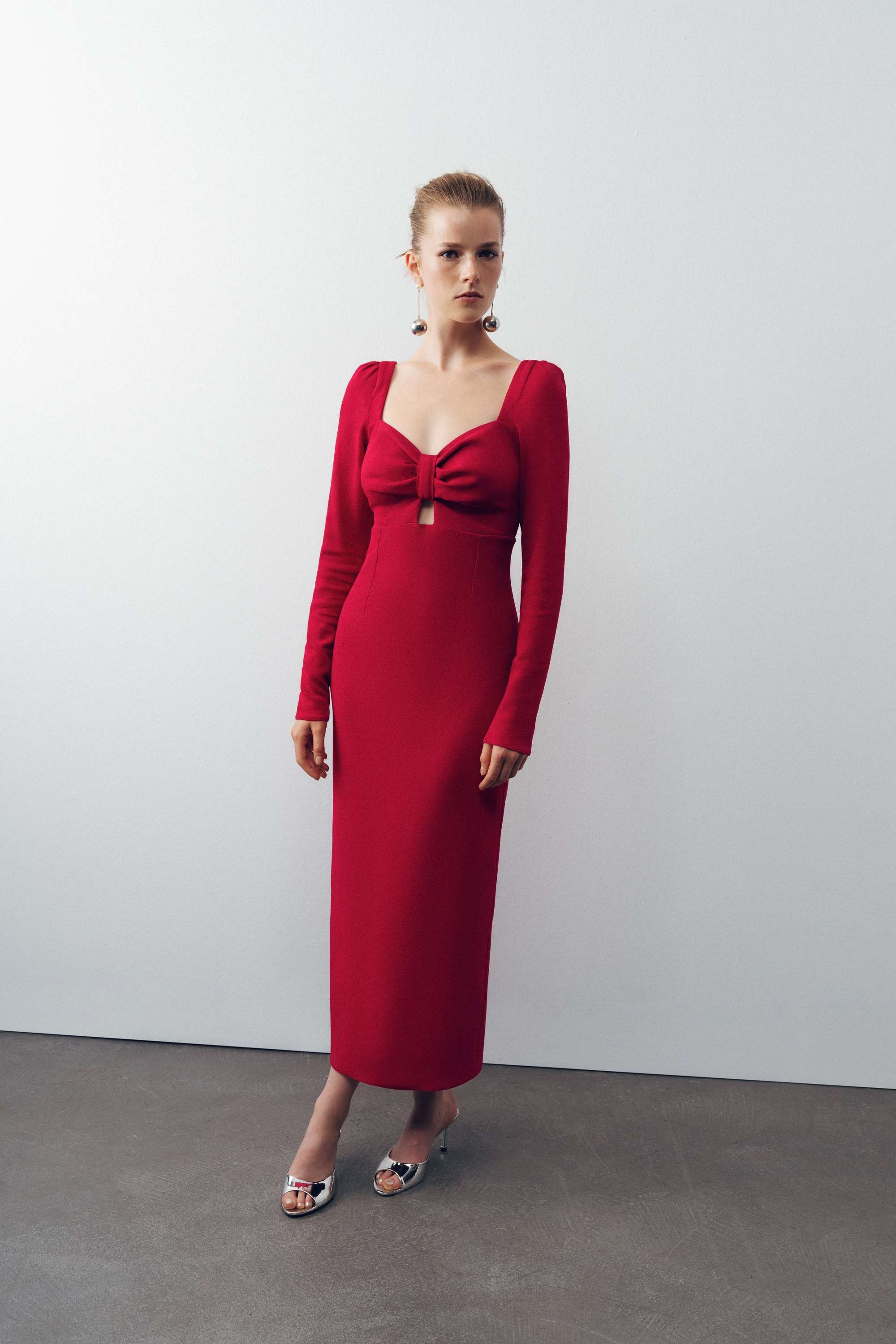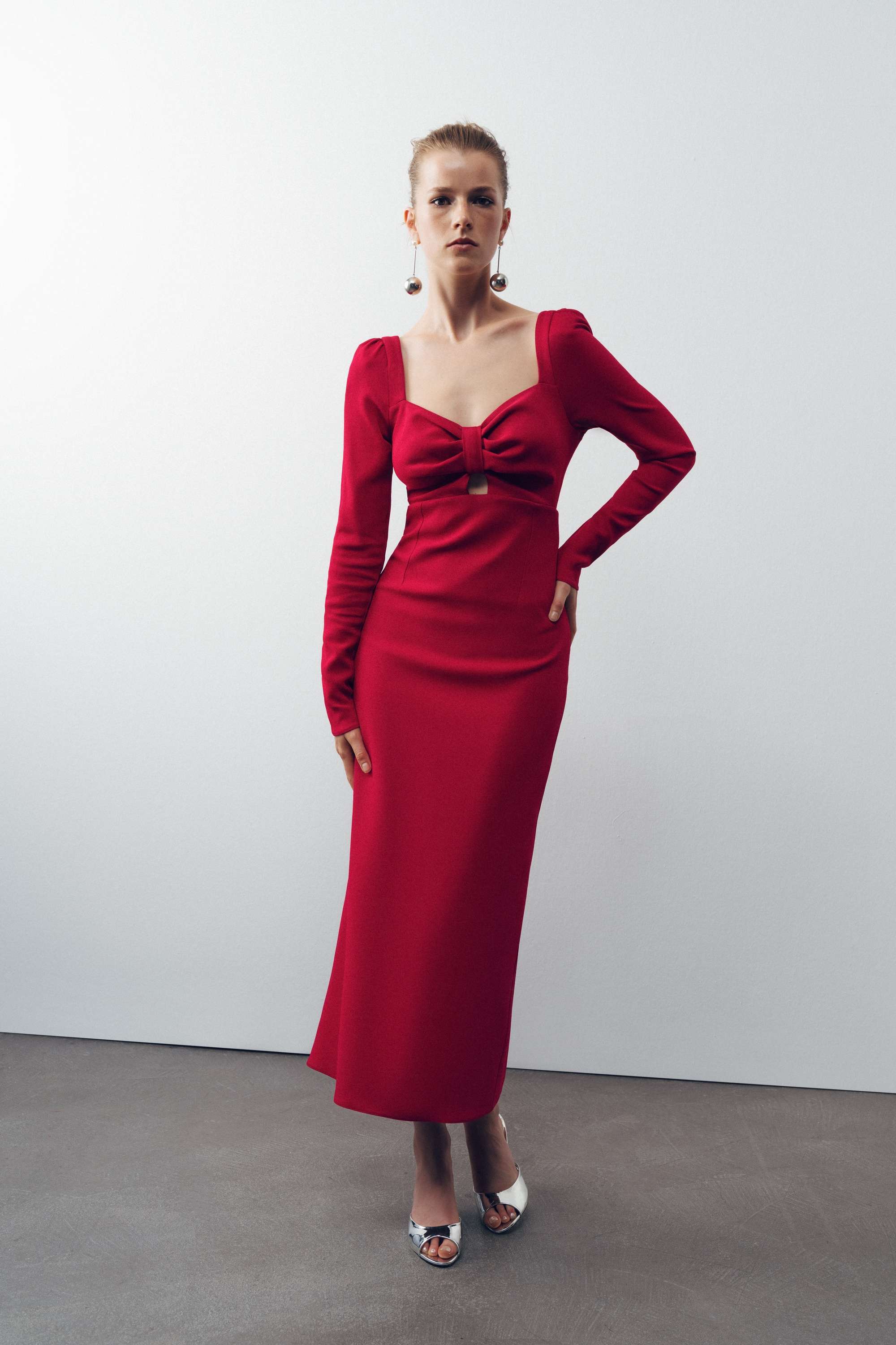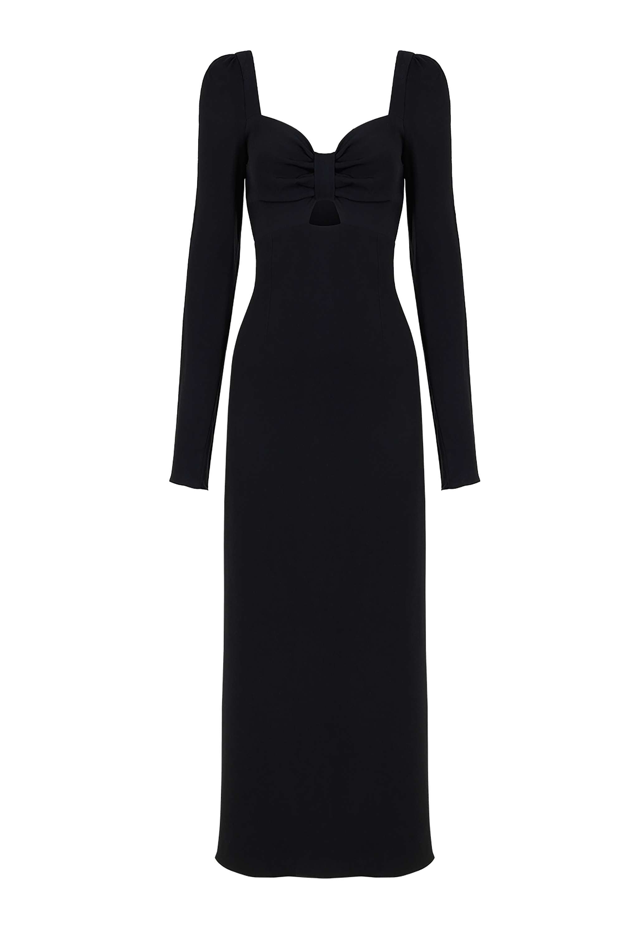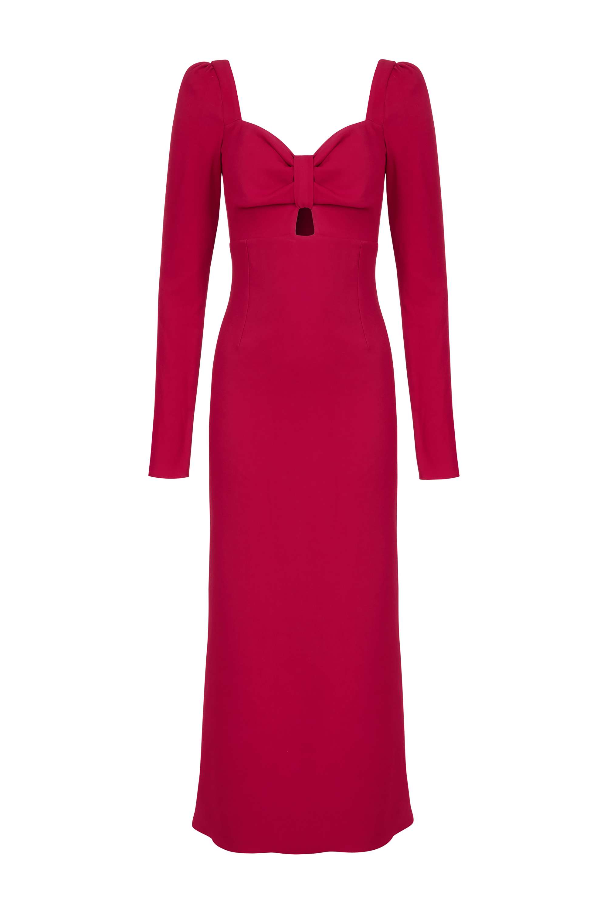 Pleated shoulder midi dress with front heart detail.